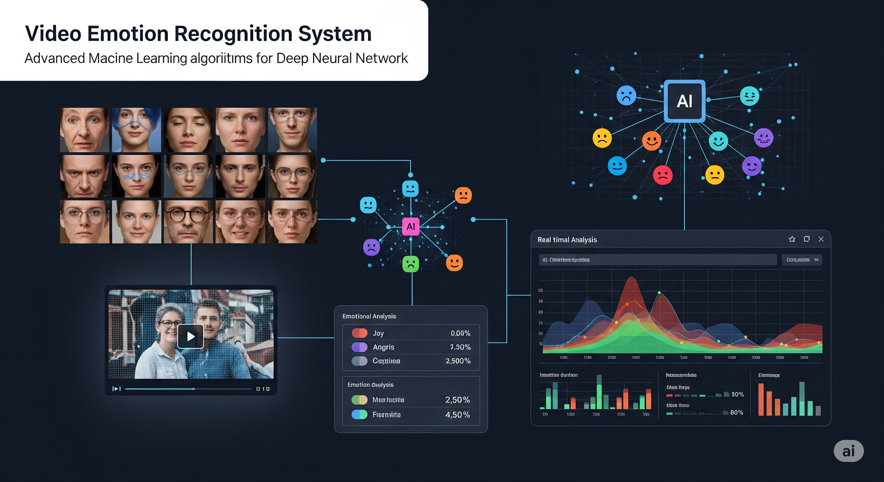 Aplicación de visión por computadora que detecta y clasifica emociones en tiempo real desde stream de video, utilizando redes neuronales convolucionales para análisis facial.